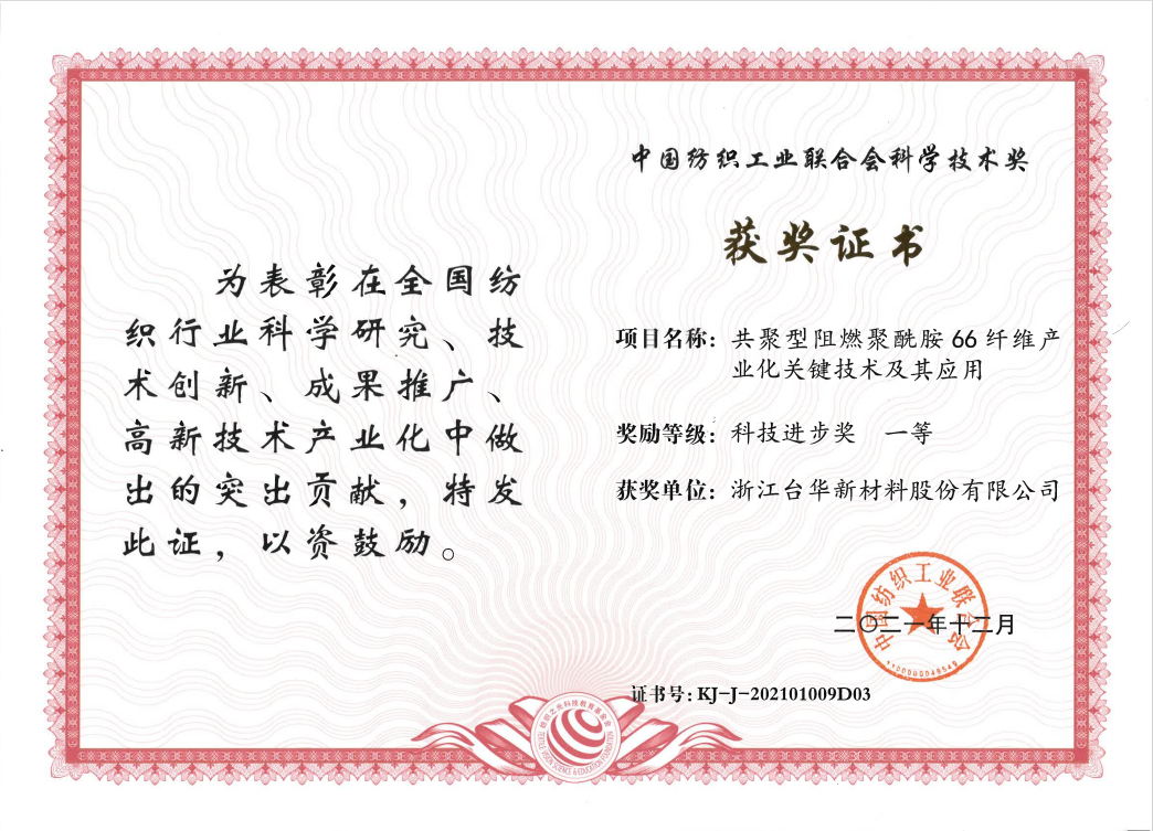 中國(guó)紡織工業(yè)聯(lián)合會(huì)科技進(jìn)步一等獎(jiǎng)