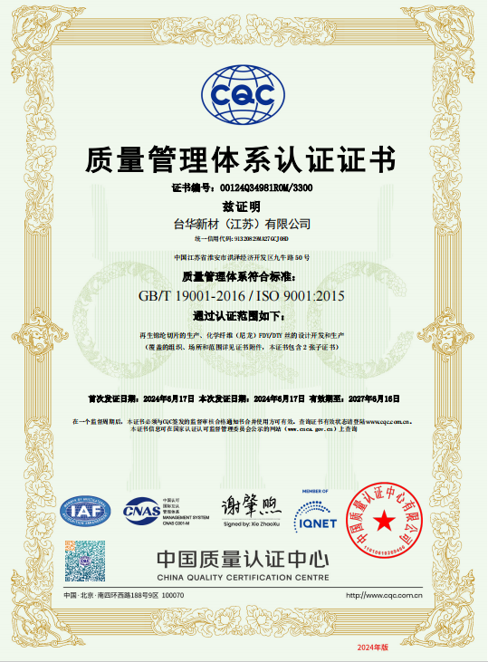 臺(tái)華新材(江蘇)ISO9001